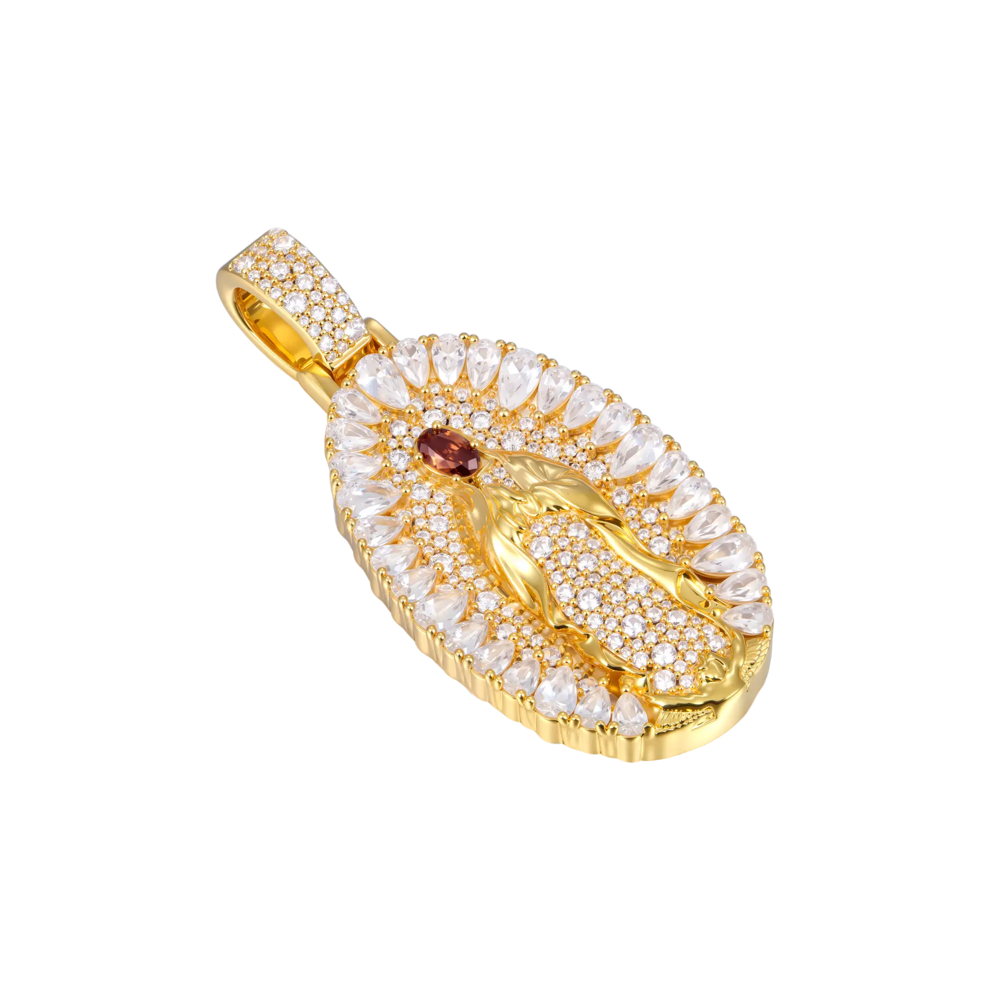 APORRO features a vertically elongated pear-shaped silhouette with soft, focused lines, symbolizing shelter, embrace, and protection. At its center is a prayerful relief of the Virgin Mary, rendered with a reserved posture and fluid contours that preserve the solemnity of traditional religious imagery. Worn upon the chest, it becomes a personal talisman. Faith remains unobtrusive, yet ever-present.