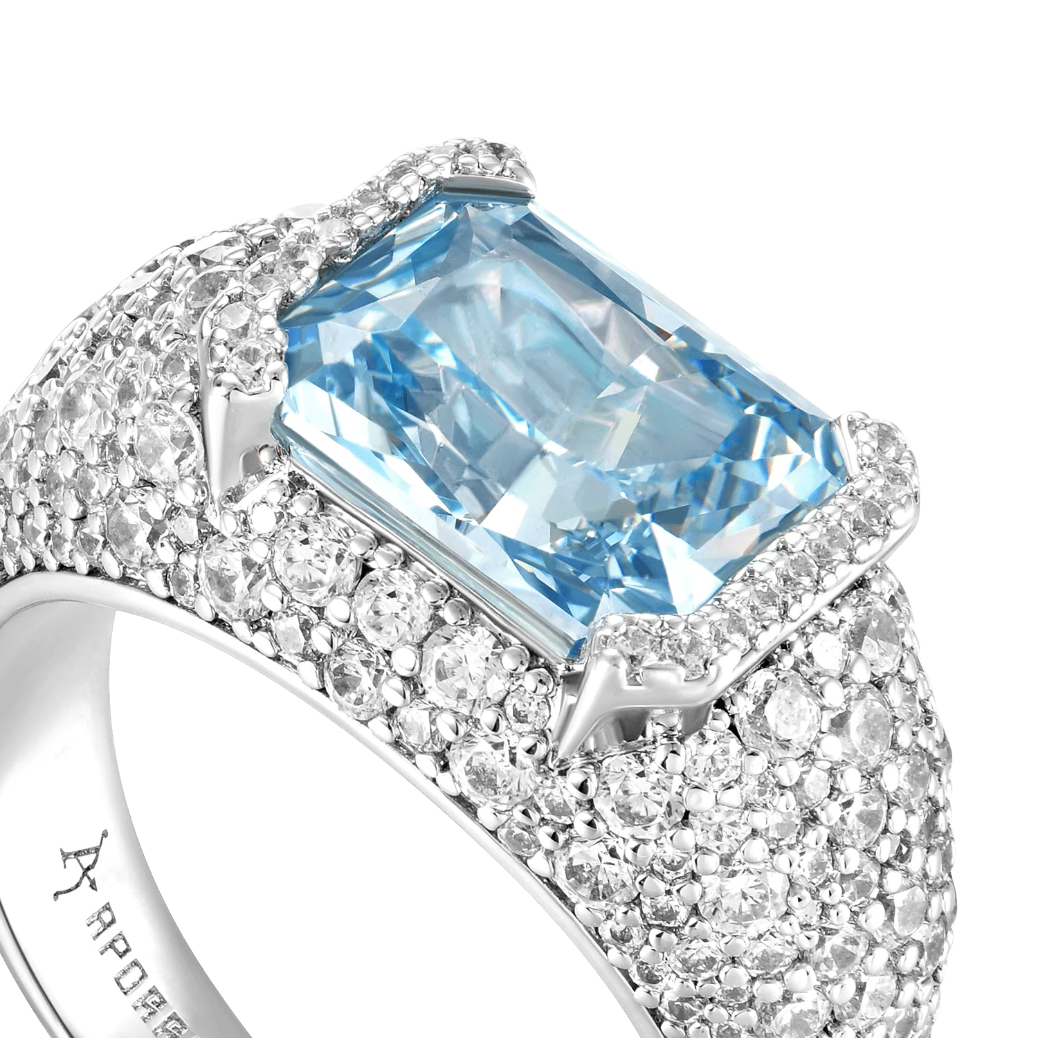 The Crushed Ice Collection is inspired by jewelry craftsman Henry Grossbard who pursued unparalleled and unconventional radiant cuts. The ring features large-sized “crushed ice” gemstones with a smooth surface design to express simplicity but extreme sparkles.