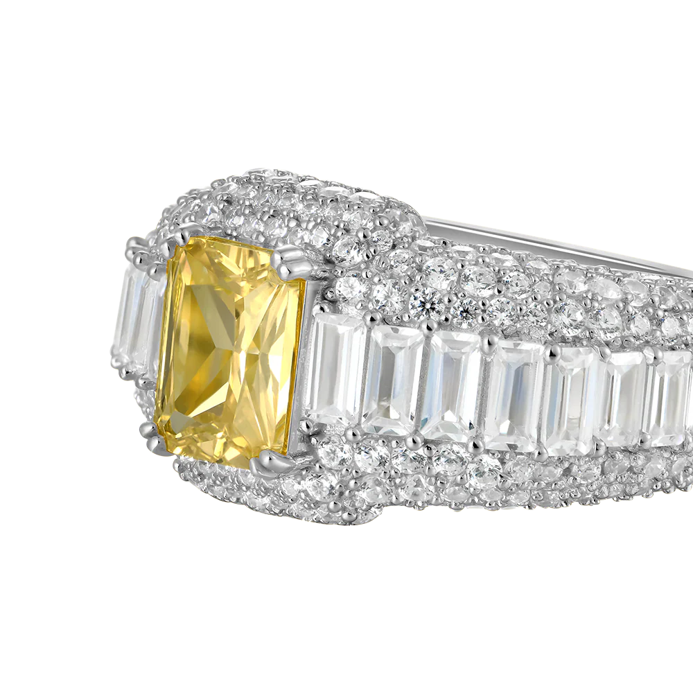 APORRO Custom Emerald Cut Ring is marked by an emerald-cut main stone with gorgeous full-ice inlays. The gradient white round cut and emerald-cut stones perfectly complement the ring for the ultimate sparkle, in line with the aesthetics of street fashion. Various Colors are available for the main emerald-cut stons. You can freely customize your name, birthday, or even a memorable sign on the inner wall of the ring. This is a perfect gift for your loved ones or your jewelry collection.Ā