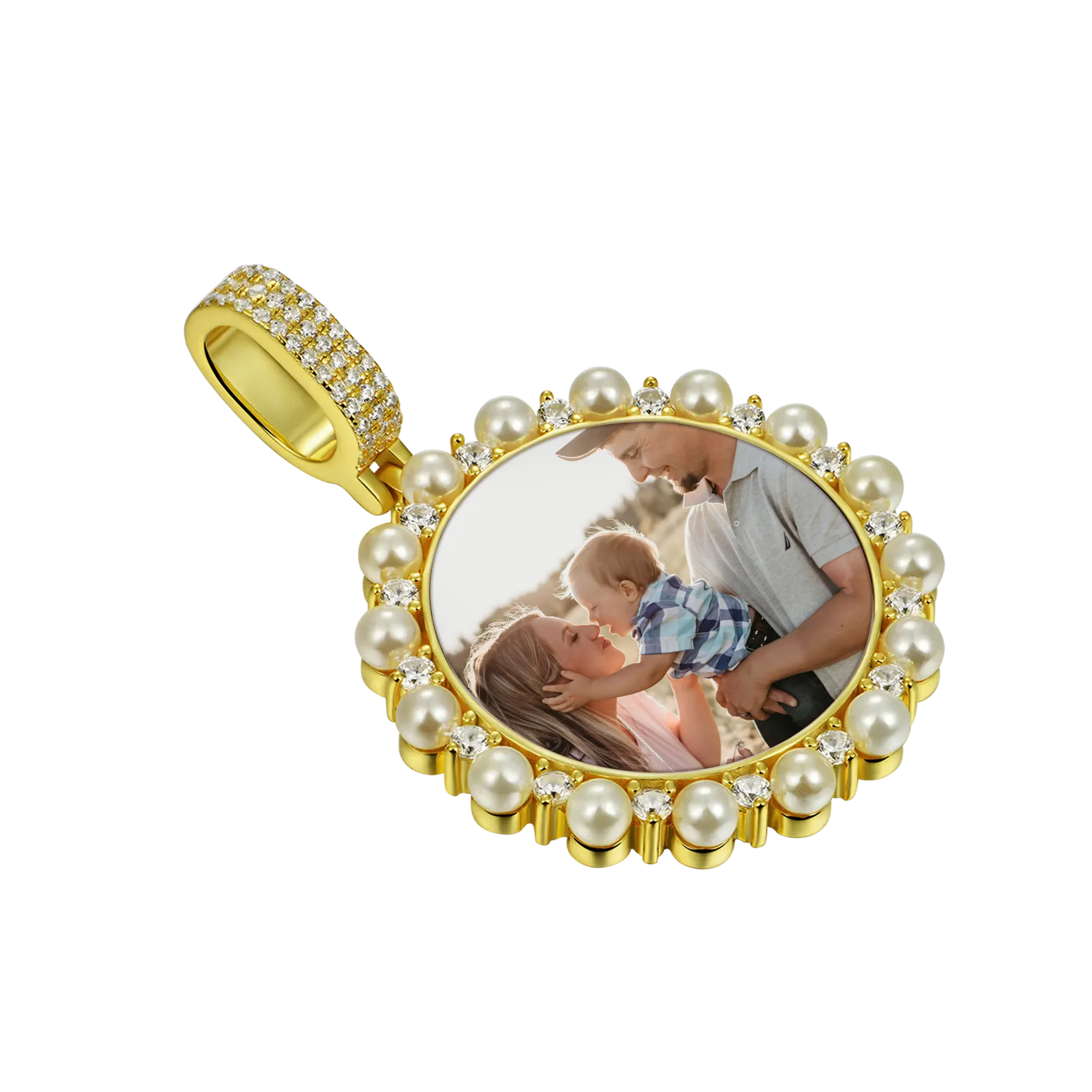 APORRO Custom Pearl Photo Pendant is handcrafted with vintage and trendy white pearls and gemstones on edge.Ā Ā It is suitable for daily wear and also your exclusive jewelry collection. Keep your precious memory by uploading a photo now.