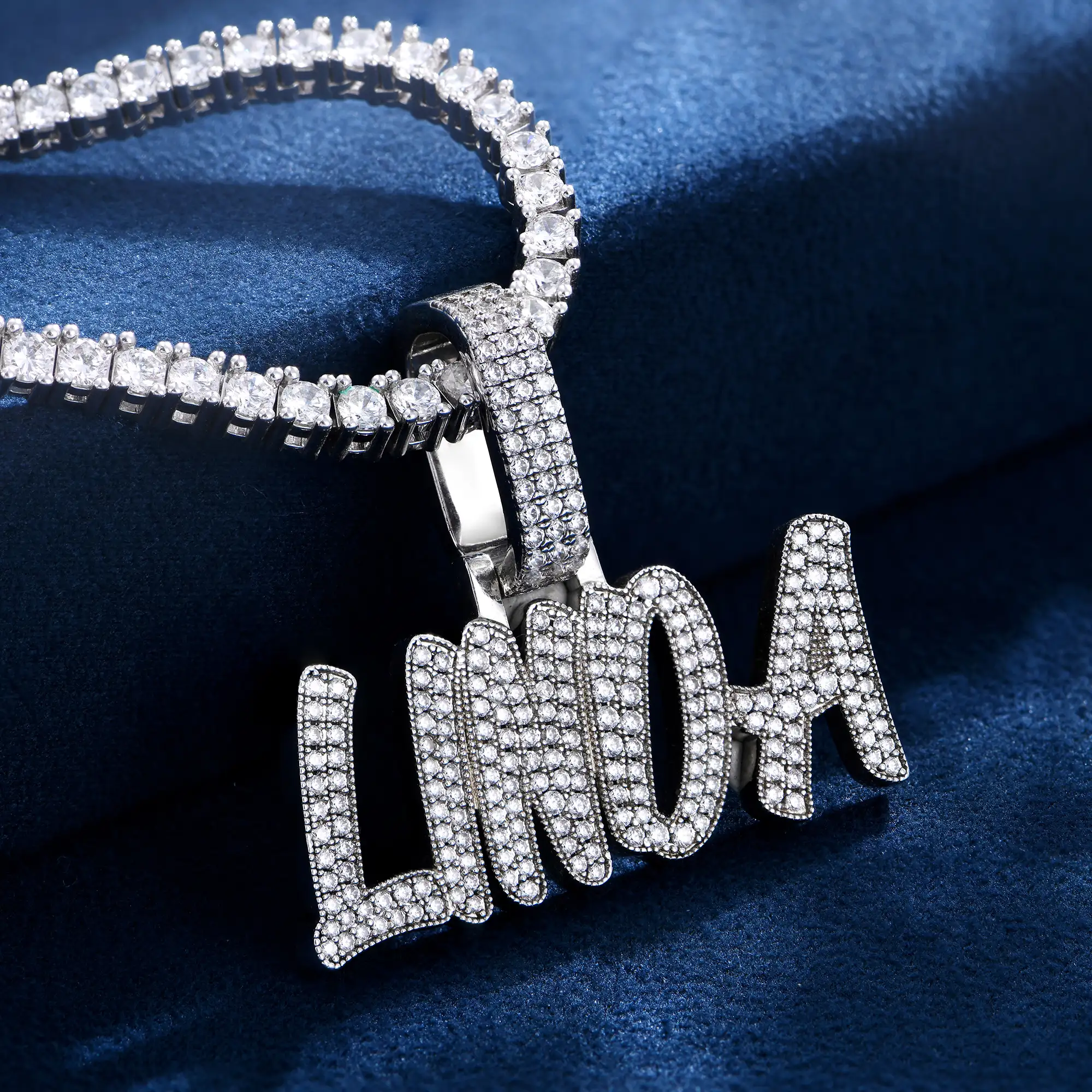 APORRO presents this custom romantic font pendant to meet the needs of modern fashion. This pendant features high-quality round-cut diamonds with simple lines outlining the most soulful font, sparkling and minimalist.