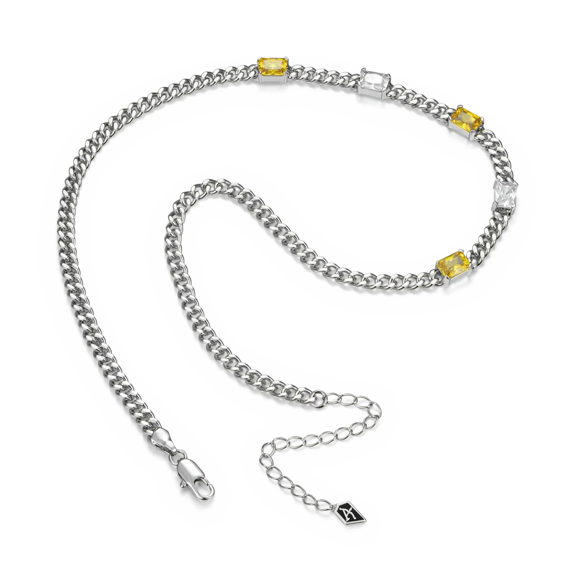 APORRO strives to take classic Cuban links to the next level by fusing hand-set yellow and white emerald-cut gemstones into the link design and interpreting the clash of classic designs with popular street elements for those daring enough to experiment with a bold style.