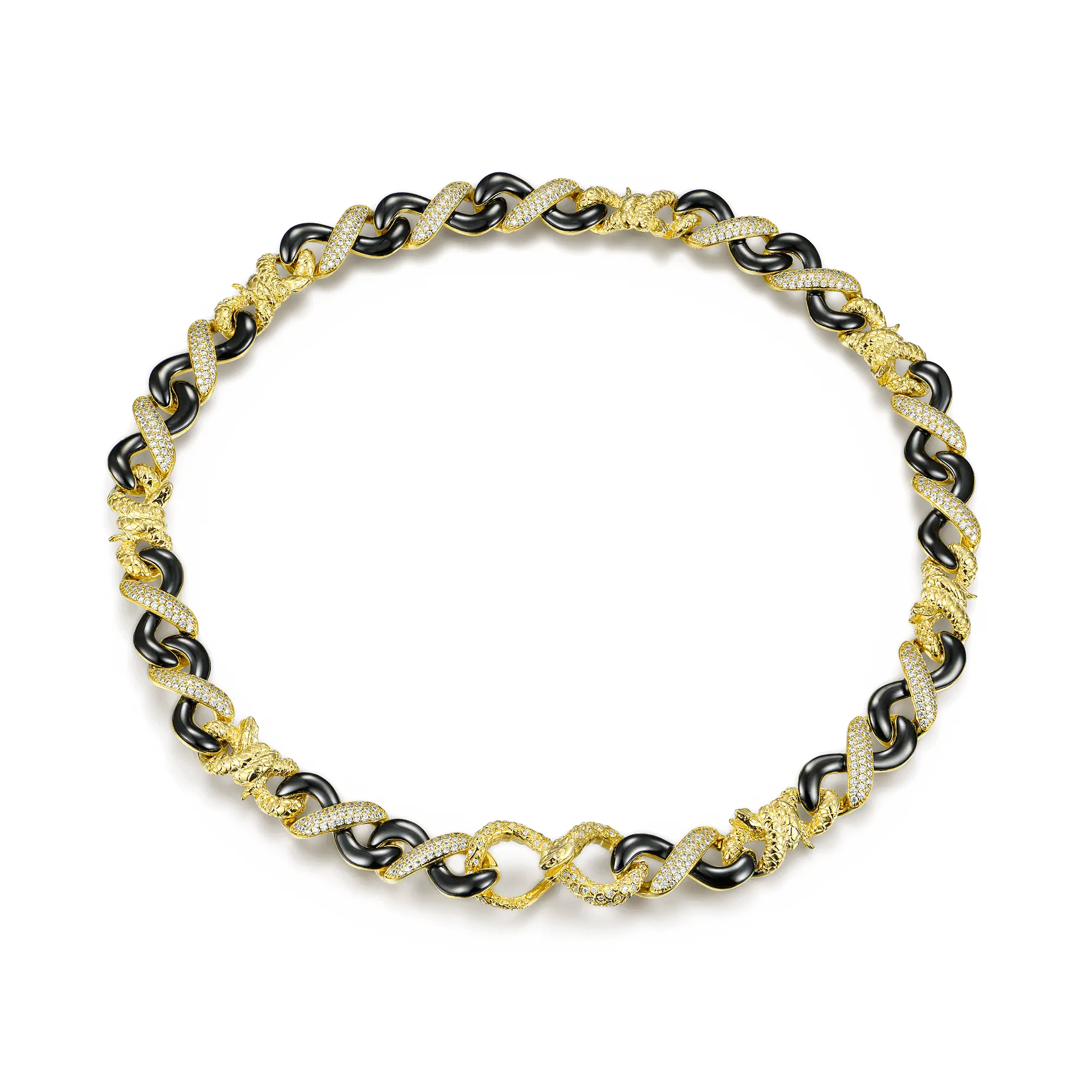 1. The two-tone infinity-shaped chain blends the black ceramic with metal material perfectly. The ceramic is rich in glossy texture, while the metal is inlaid with 30 shinly diamonds in 3 rows.