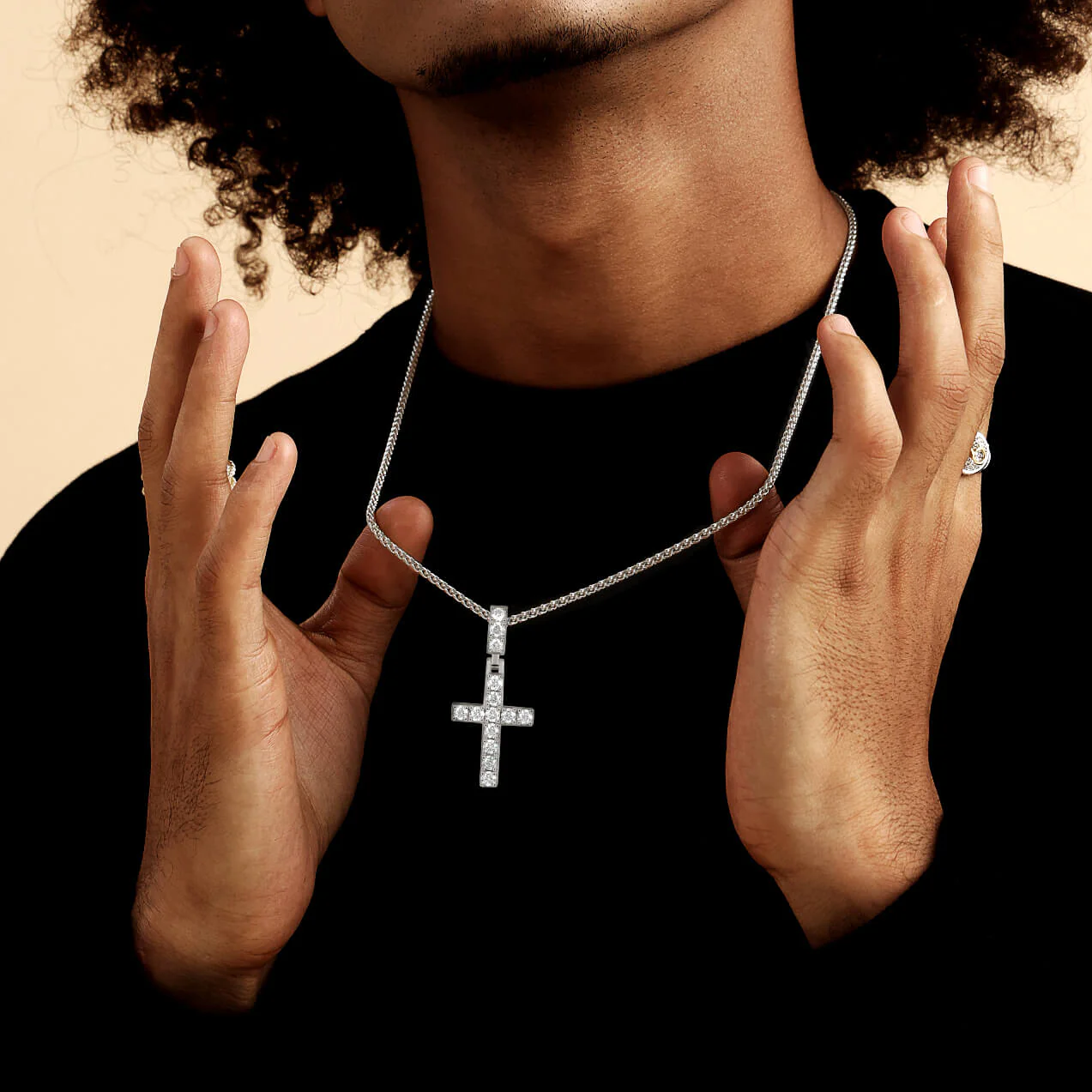 Classic cross elements with VVS quality Moissanite stone. Simple pendant but speaks volumes.