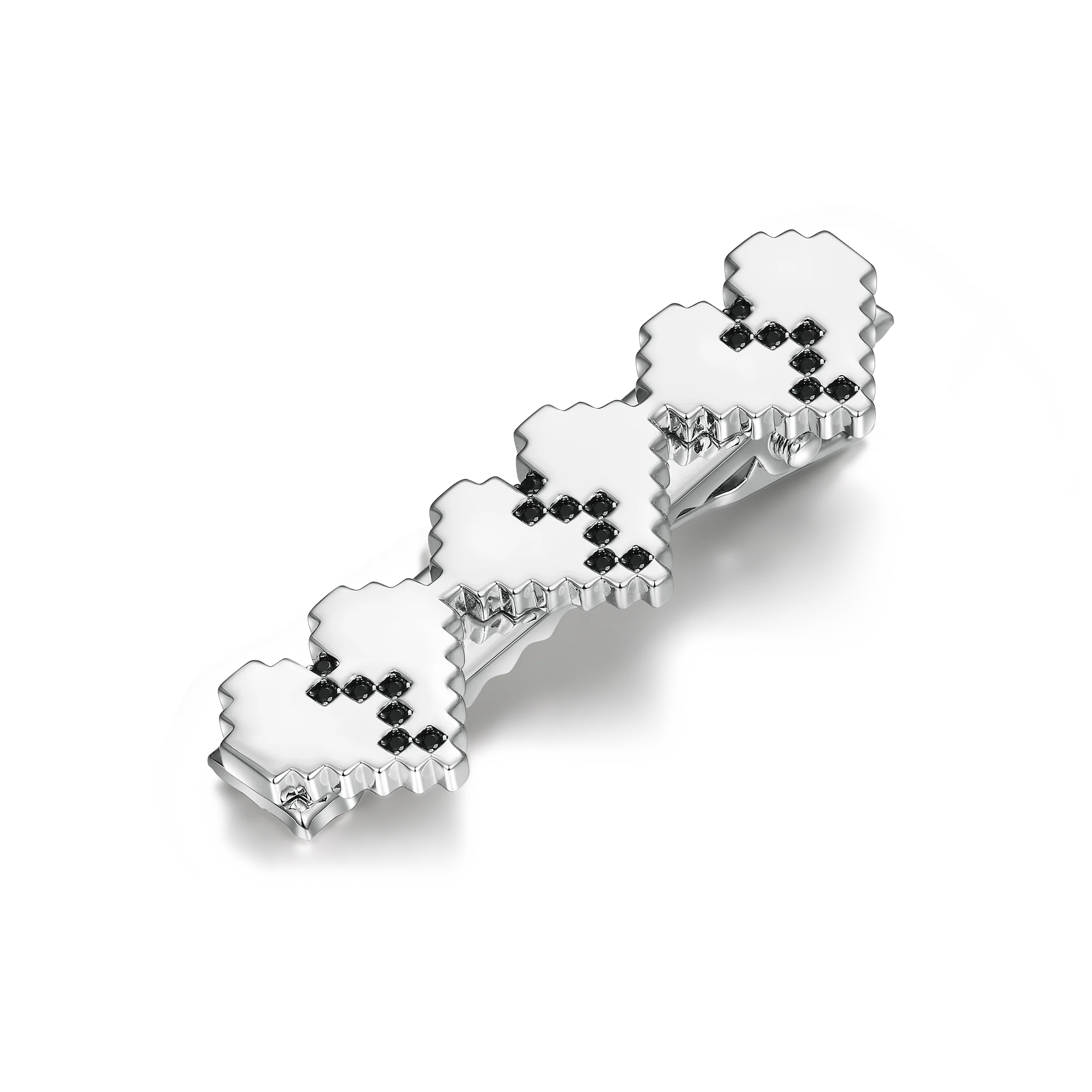 This design is intended to appeal to those who seek individuality, enjoy the art of digitizing and showing their inner emotions. It is an accessory that is suitable for everyday wear and can also be a fashion highlight for special occasions. Through the combination of pixel style and cracked heart, it conveys the complexity of emotions and shows the beauty and technological spirit of the digital age.