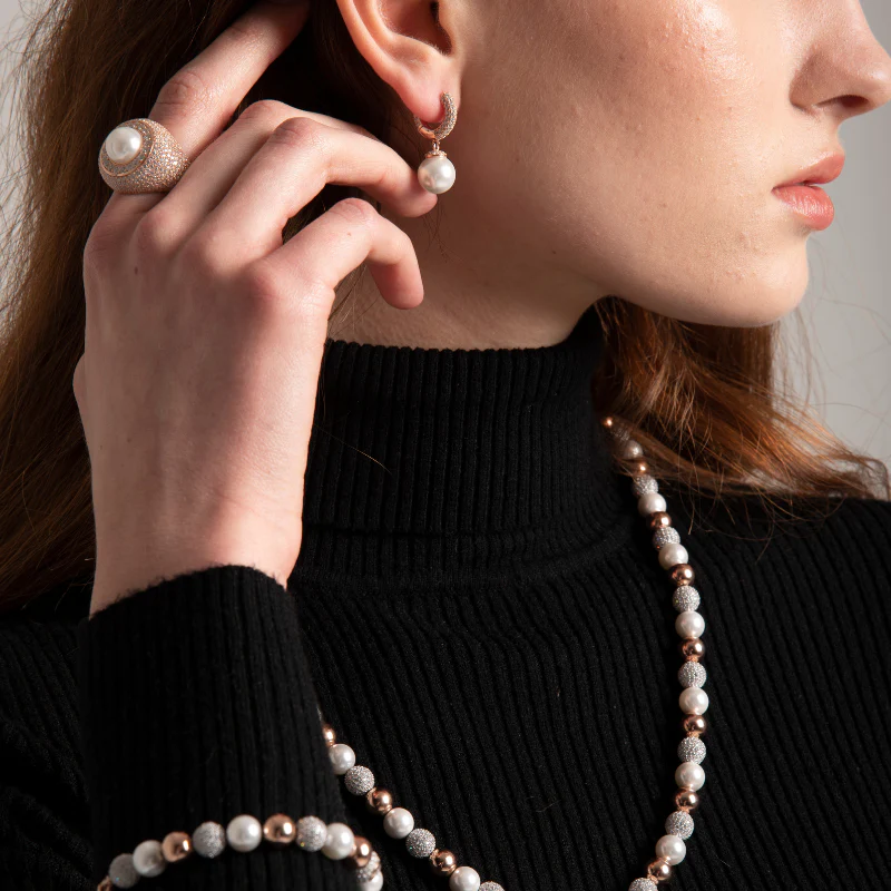 Breaking the boundaries, APORRO originally combined rose gold and white gold iced balls with pearl, which embraces ultra-shine and glories. The Trove Chain is the statement of the street fashion icon.